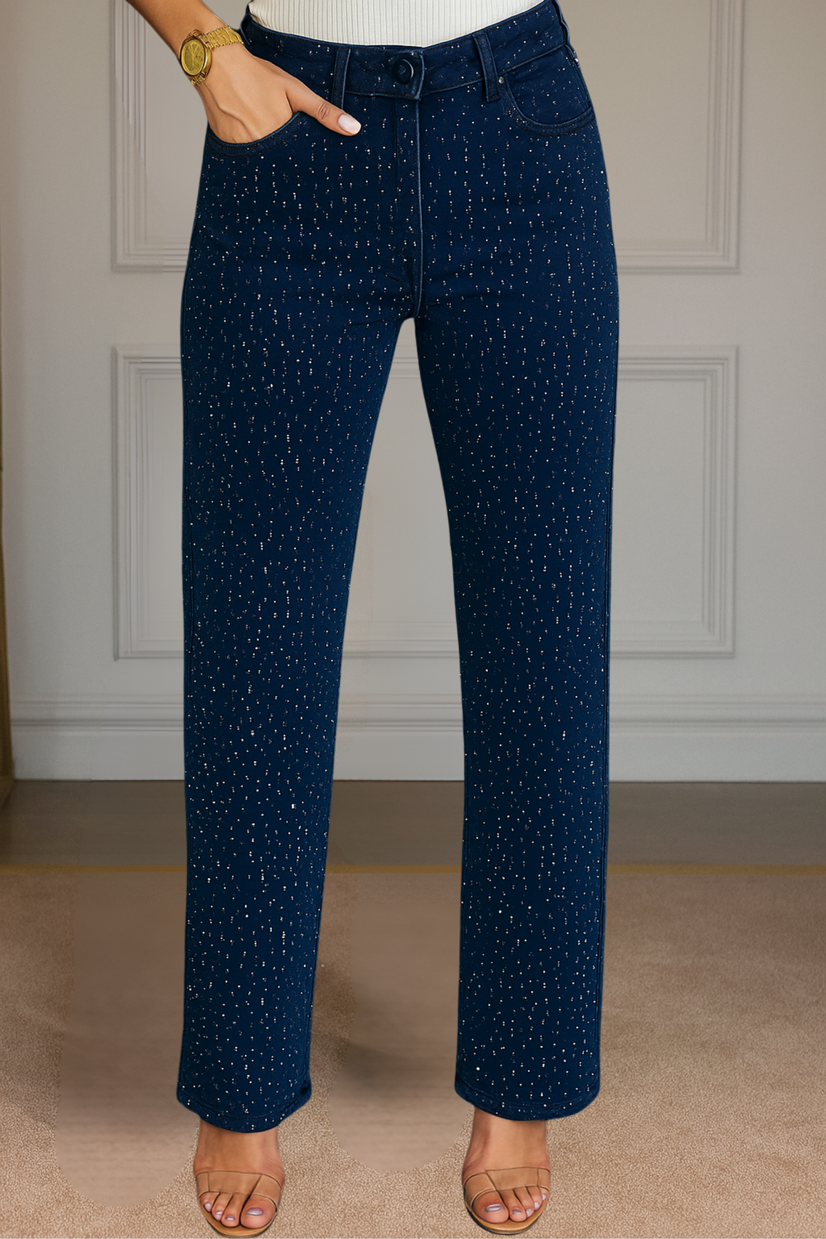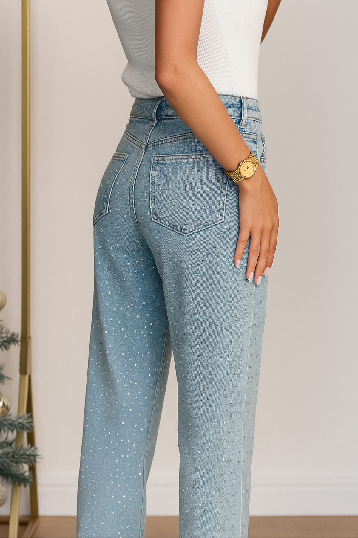 ATEMBERAUBENDE STRASS-DETAILS – Jede Jeans ist mit präzise angebrachten Hotfix-Strasssteinen verziert, die das Licht wunderschön einfangen. Die funkelnden Strassverzierungen verleihen Ihrem Look sofort Glamour und sitzen auch nach mehrmaligem Waschen fest.