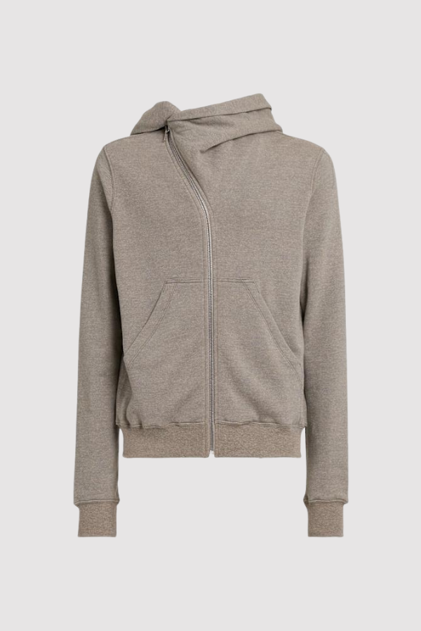 Bleib warm und locker mit däm graue Mélange-Kapuzenpulli. Mit Liebi zum Detail i Italien gmacht, vereint er Komfort, Stil und Handwerkschunst. Dä feschte Kapuze und dä Reissverschluss vorn sorge für Funktionalität und Wärmi, während d’Ripp-Abschlüsse e perfekte Passform gä. Mit zwei praktische Fronttasche passt dä Pulli ideal für Alltag oder Freizeit.