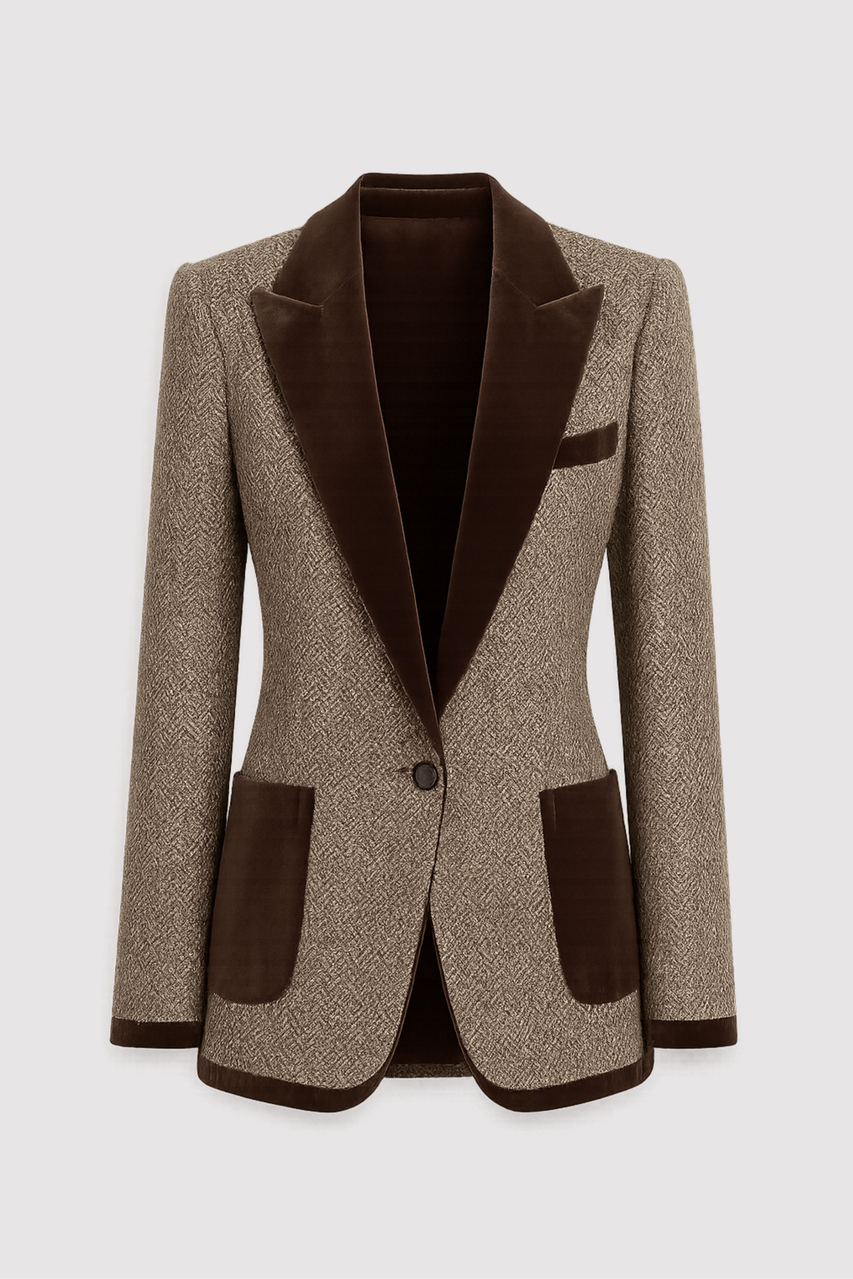 Erhöhen Sie Ihre Garderobe mit diesem eleganten braunen Fischgrät-Velours-Blazer, einem zeitlosen Stück, das vintage Charme und zeitgenössischen Stil nahtlos verbindet. Der luxuriöse Veloursstoff zeigt ein klassisches Fischgrät-Muster und bietet sowohl visuelle Tiefe als auch taktile Eleganz. Mit einem raffinierten Ein-Knopf-Verschluss bietet dieser Blazer eine schlanke Silhouette, die verschiedene Körperformen schmeichelt und gleichzeitig eine makellose Struktur bewahrt. Der reiche braune Farbton lässt sich mühelos mit neutralen Farben oder kräftigen Akzenten kombinieren und macht ihn zu einem unverzichtbaren Lagenstück für professionelle Anlässe, Abendveranstaltungen oder gehobene Freizeitkleidung. Perfekt für diejenigen, die Qualitätshandwerk und zeitloses Design schätzen.