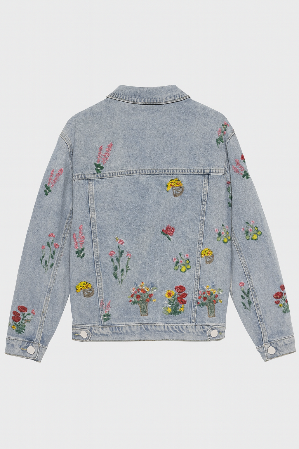 Diese Jacke ist ein zeitloses "Must-have", das Saison-Trends überdauert. Die kunstvollen Blumen-Details machen aus einer schlichten Jeansjacke einen echten Hingucker.