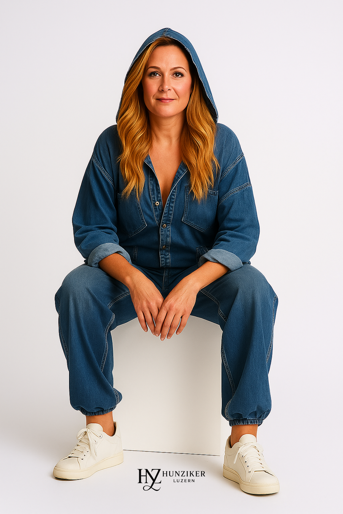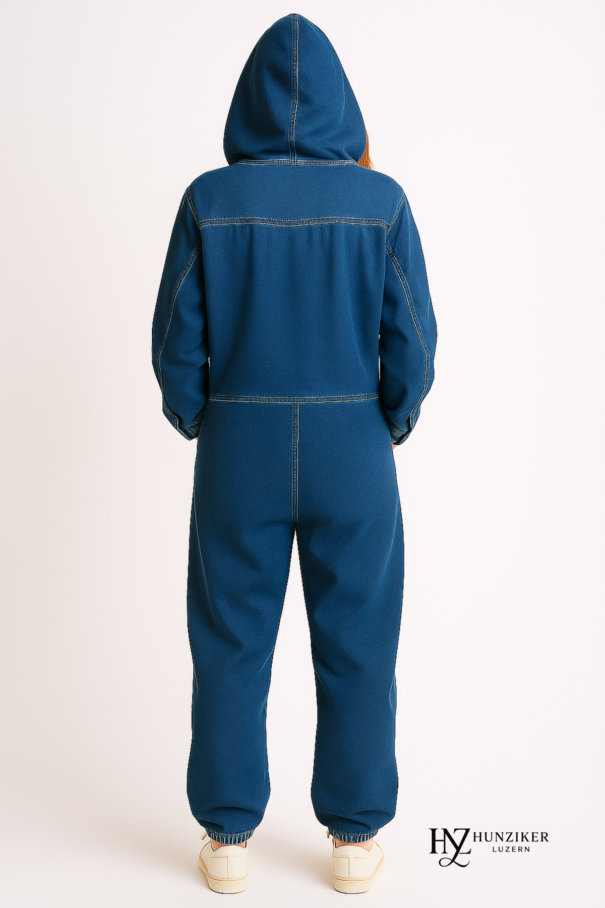 Dieser locker sitzende, entspannte Jumpsuit mit Kapuze lässt sich perfekt mit Stiefeletten und Sonnenbrille zu einem lässigen Alltagslook kombinieren. Für kühleres Wetter kann er ideal mit einem warmen Rollkragenpullover geschichtet werden. Dezente Accessoires setzen den Fokus auf die Details des Jumpsuits.