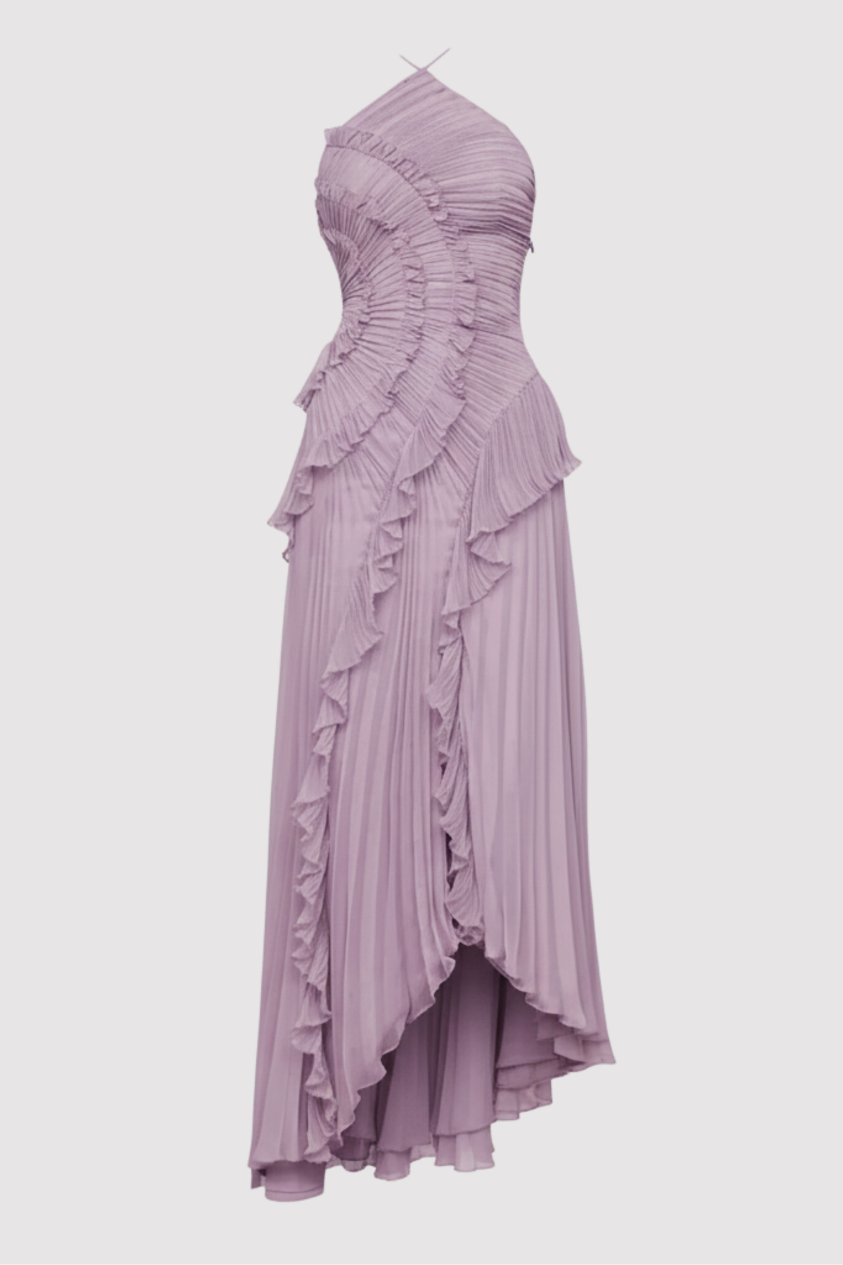 Dieses Kleid ist das perfekte ätherische Design für einen unvergesslichen Look. Es bietet Schönheit und Komfort mit fliessenden Rüschen und skulpturalen Details.