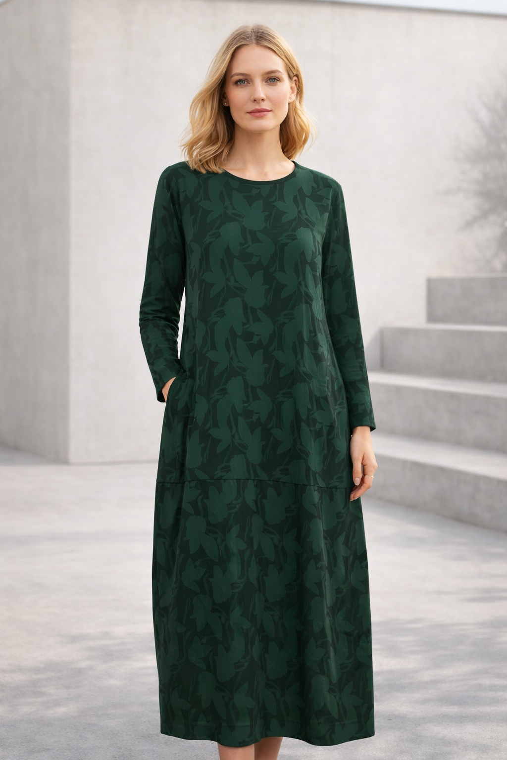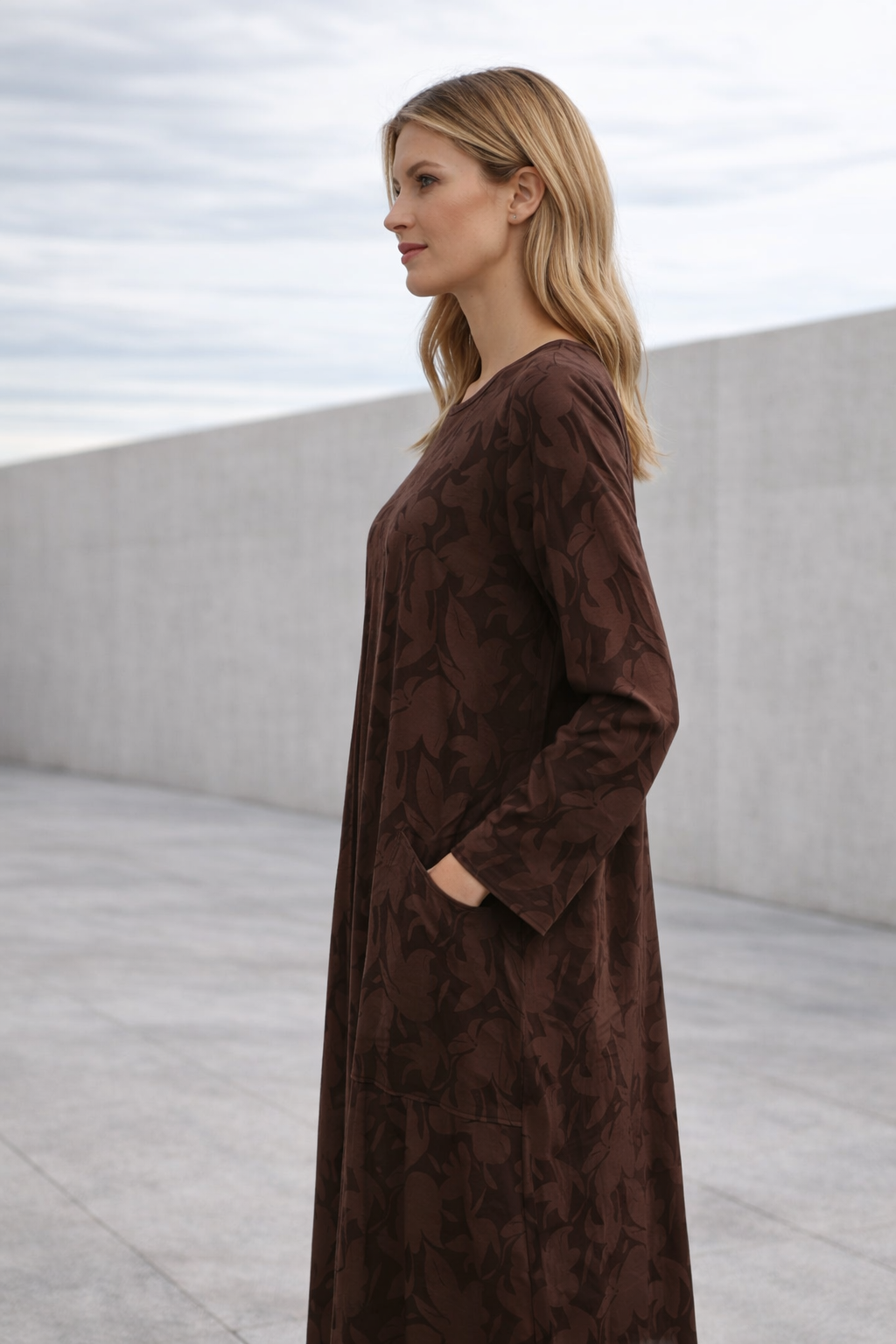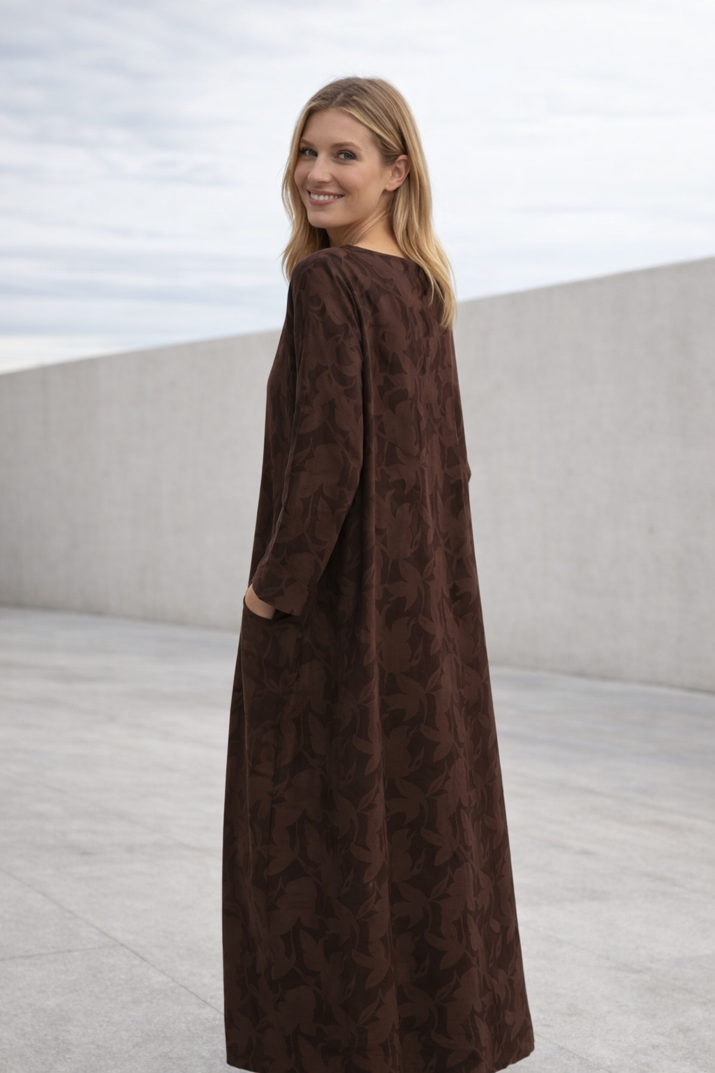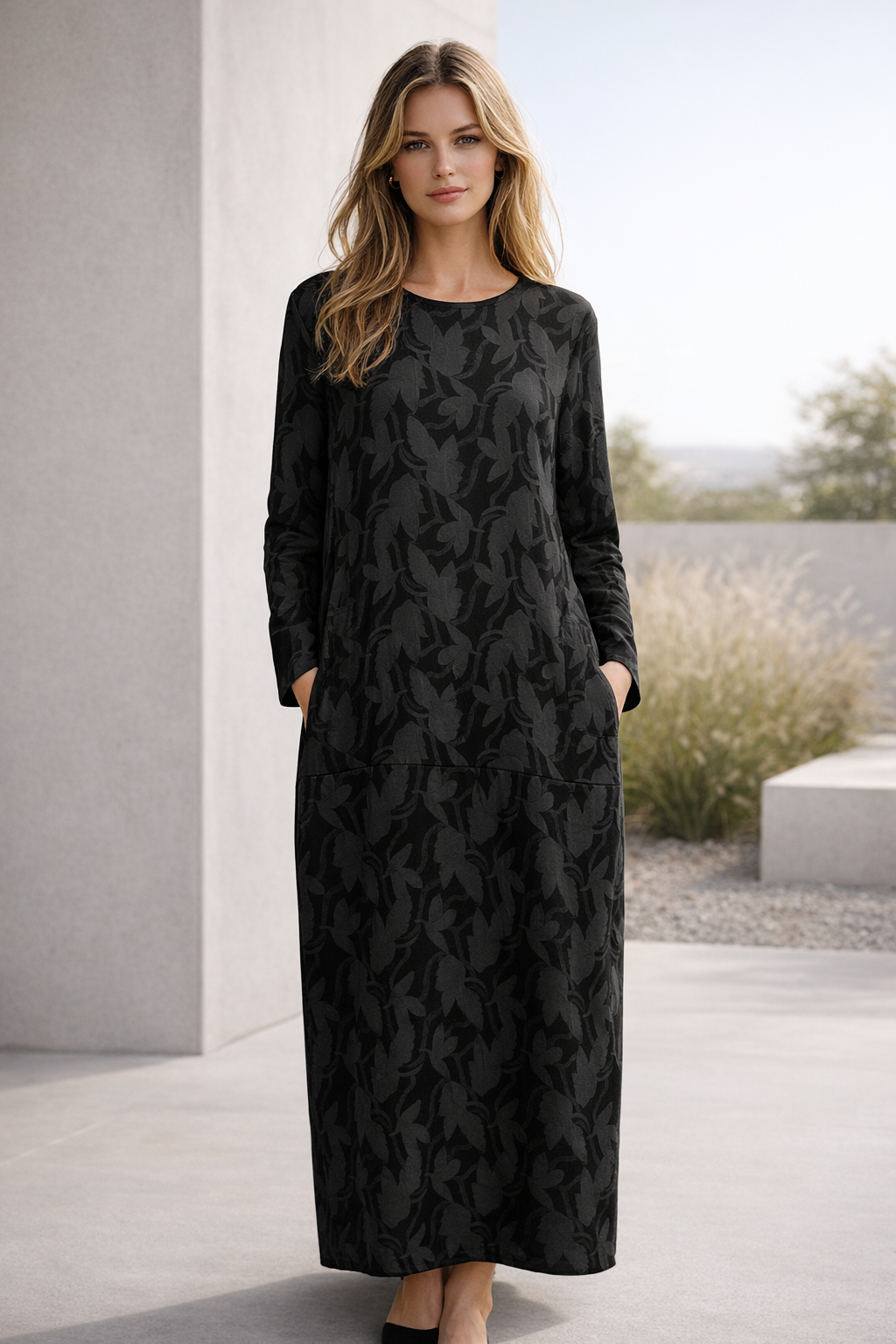Ein weiches gemustertes Kleid mit entspannter Eleganz