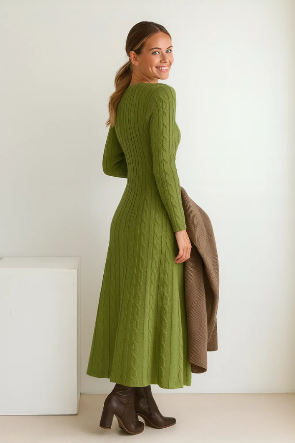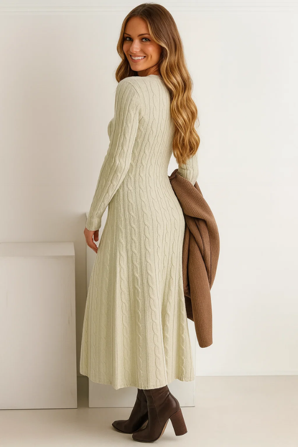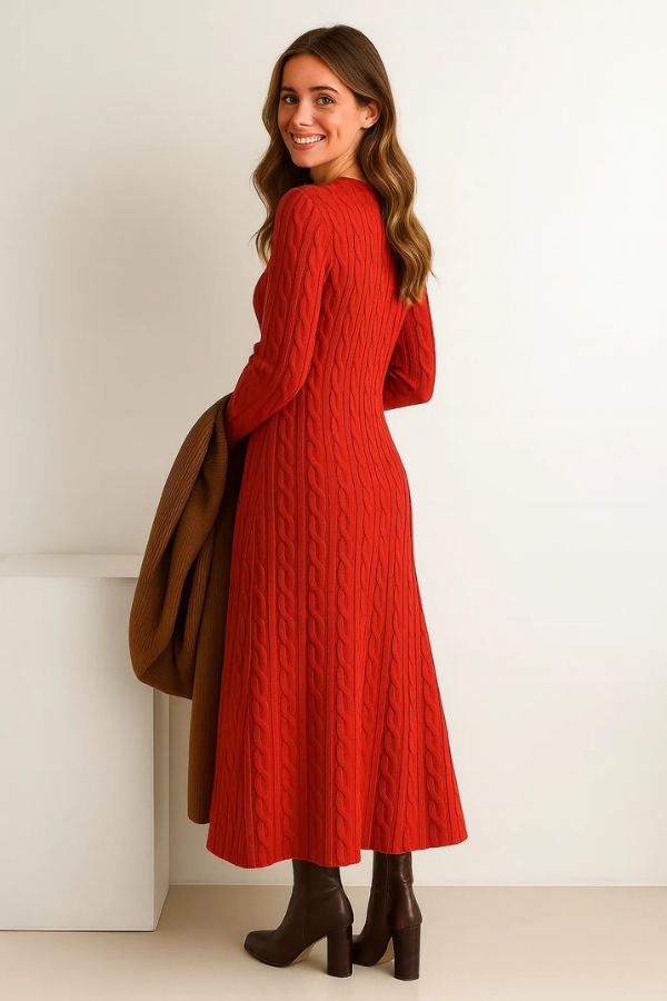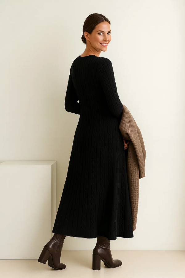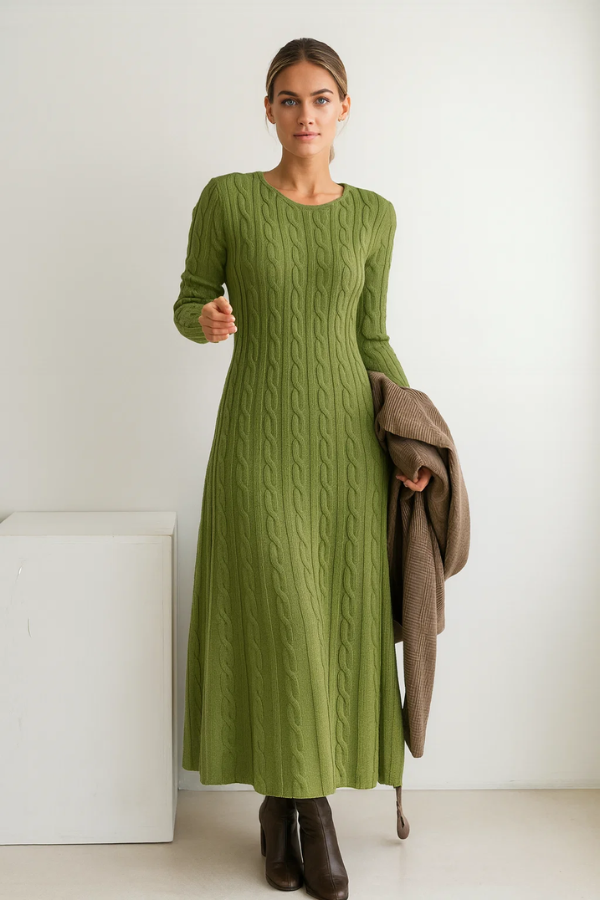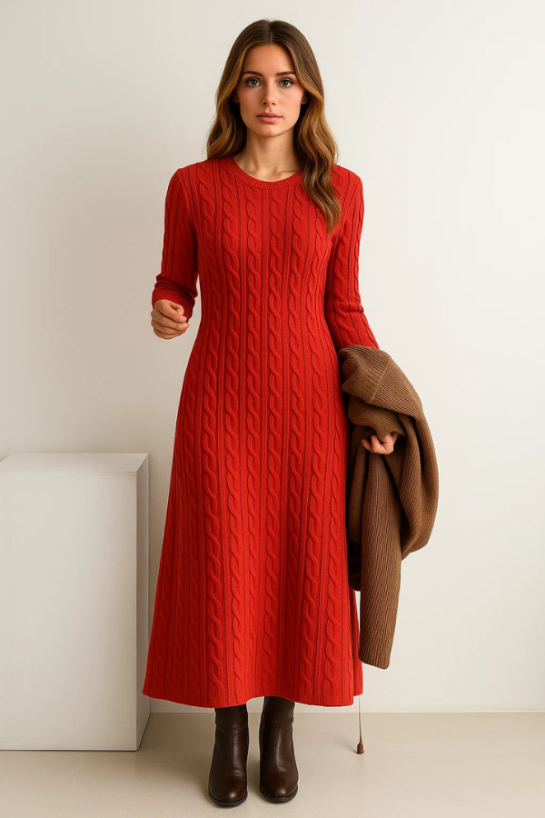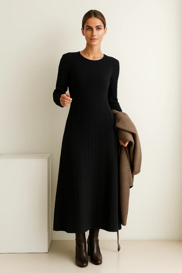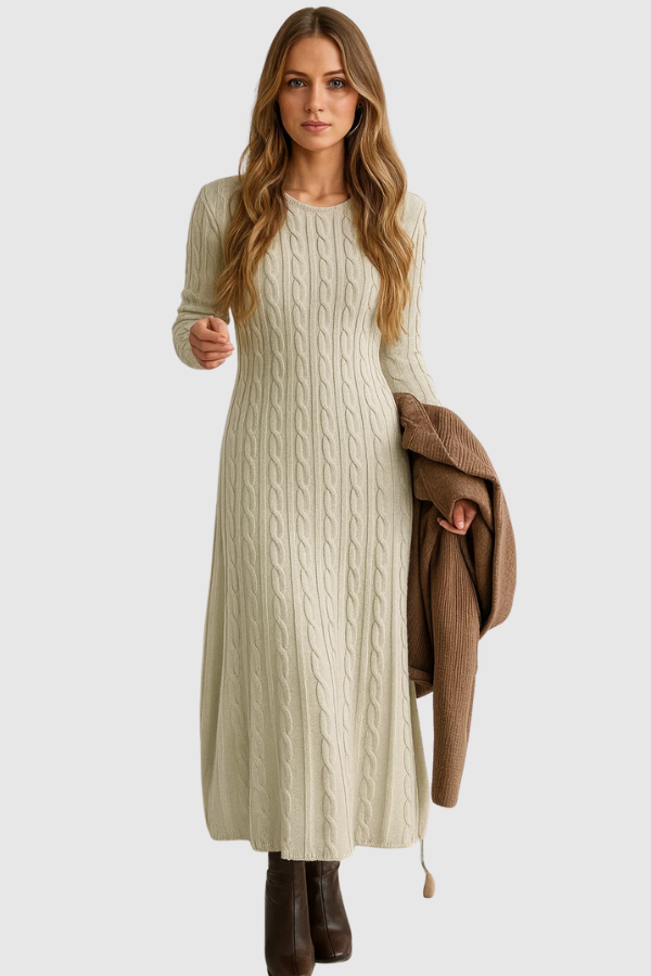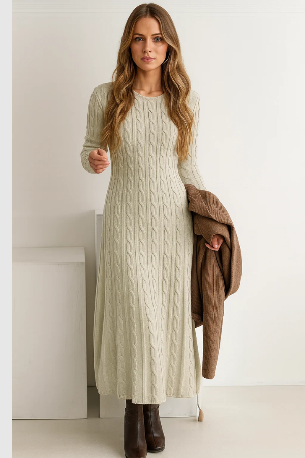 Das elegante Langkleid Vanessa vereint Weichheit, Raffinesse und mühelosen Stil. Mit einer verfeinerten Kabelstrick-Textur gestaltet, fällt es anmutig und bietet gleichzeitig sanften Stretch für ganztäglichen Komfort. Die lange, feminine Silhouette schafft einen natürlich verlängerten Look und macht es zum perfekten Kleidungsstück für gemütliche Tage, schicke Ausflüge und alles dazwischen.