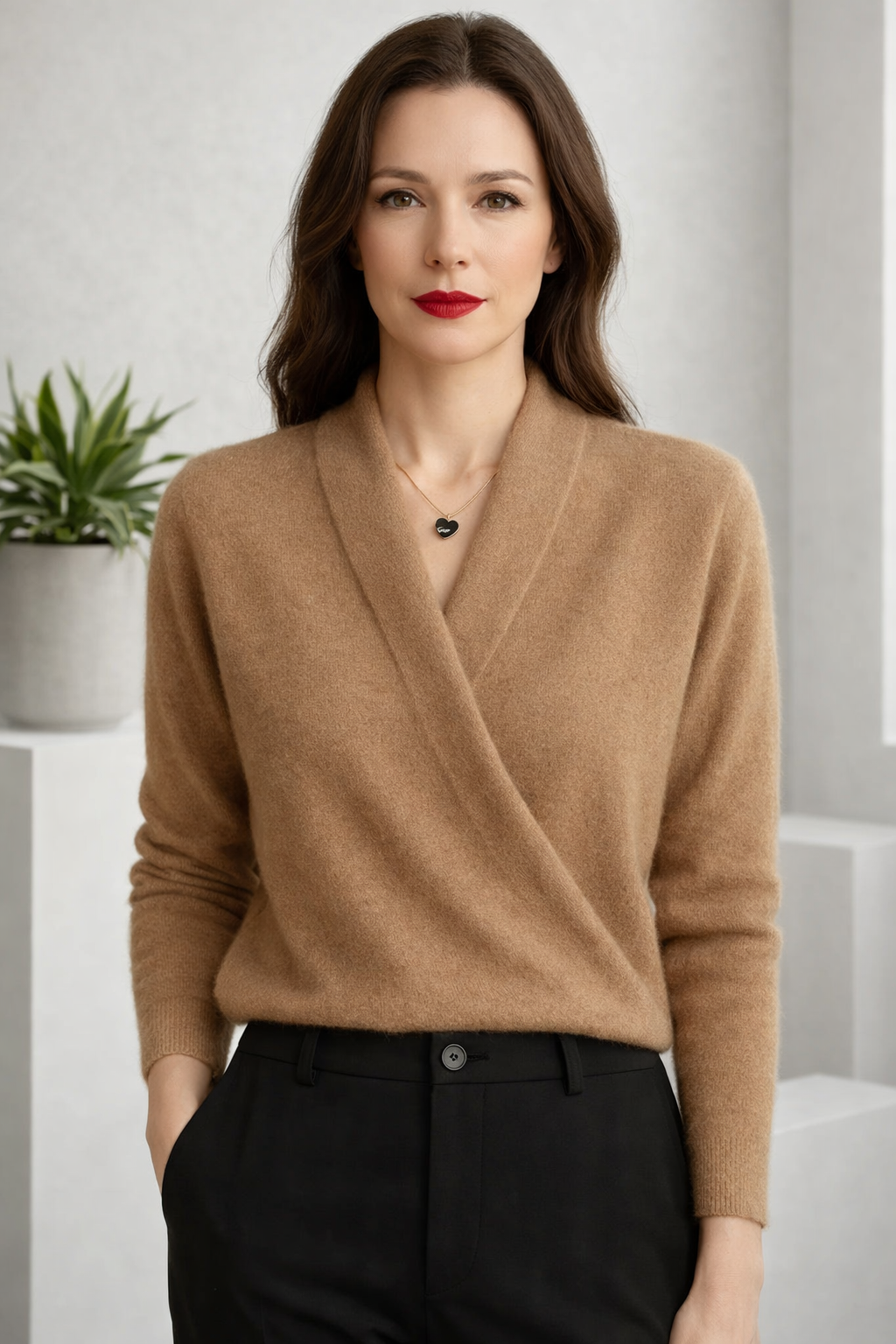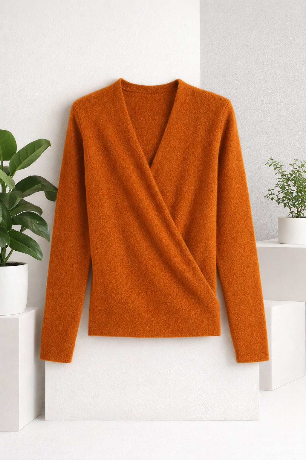 Wundervolle gesponnene Wolle, bequemer und lässiger Plissé-Ausschnitt. Leicht genug zum Layering, elegant genug, um es alleine zu tragen, ist es ein unverzichtbares, minimalistisches Basic für den Alltag.
