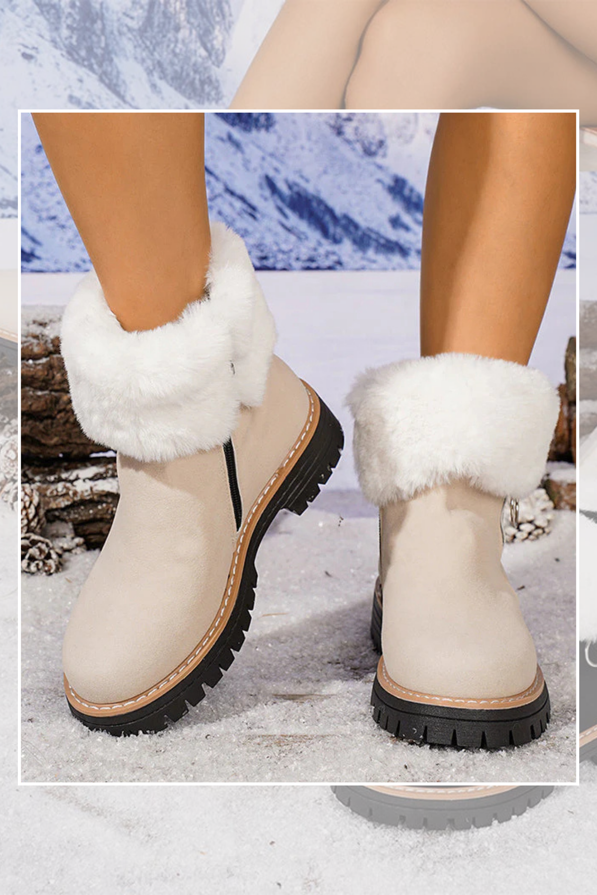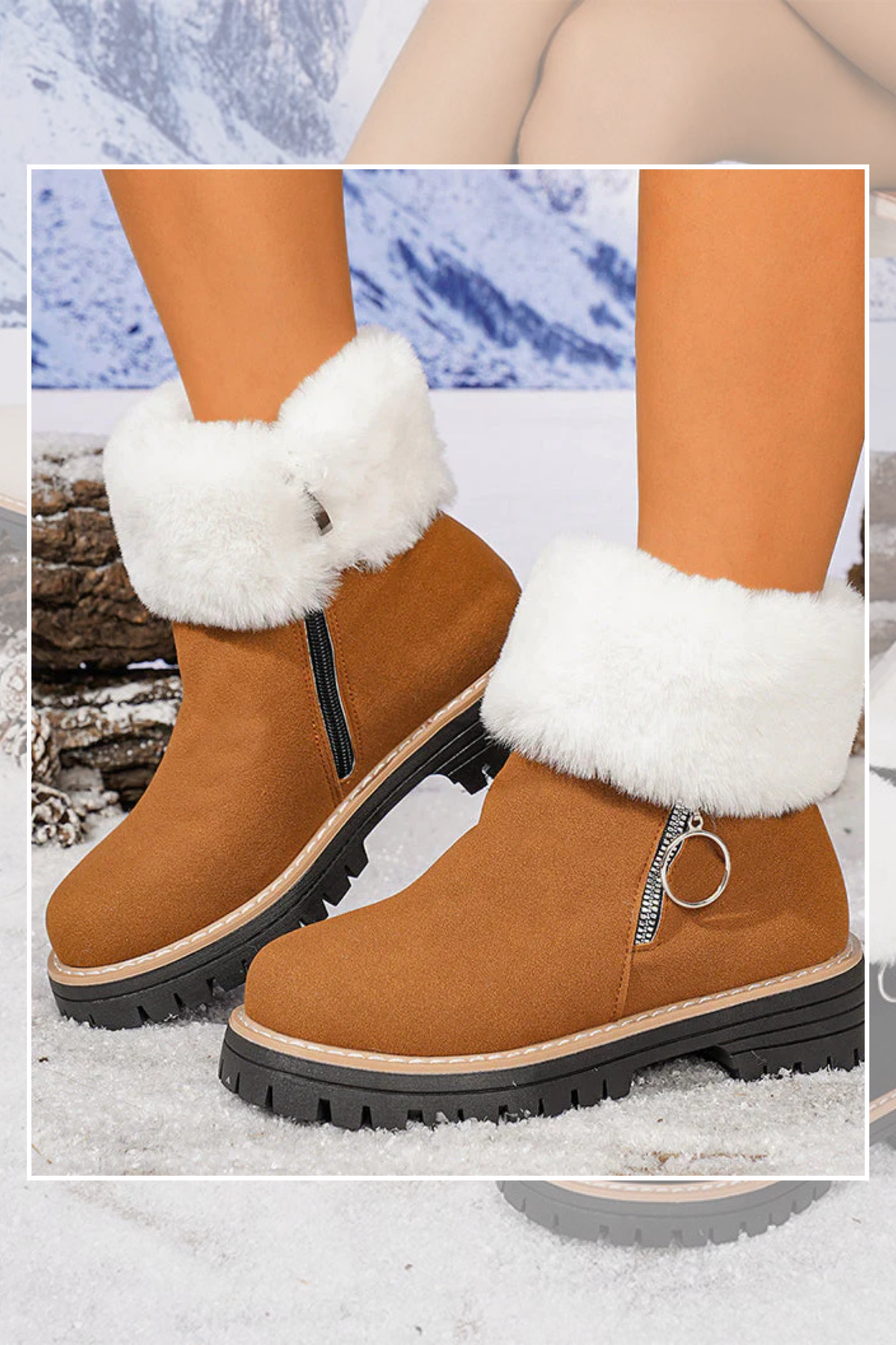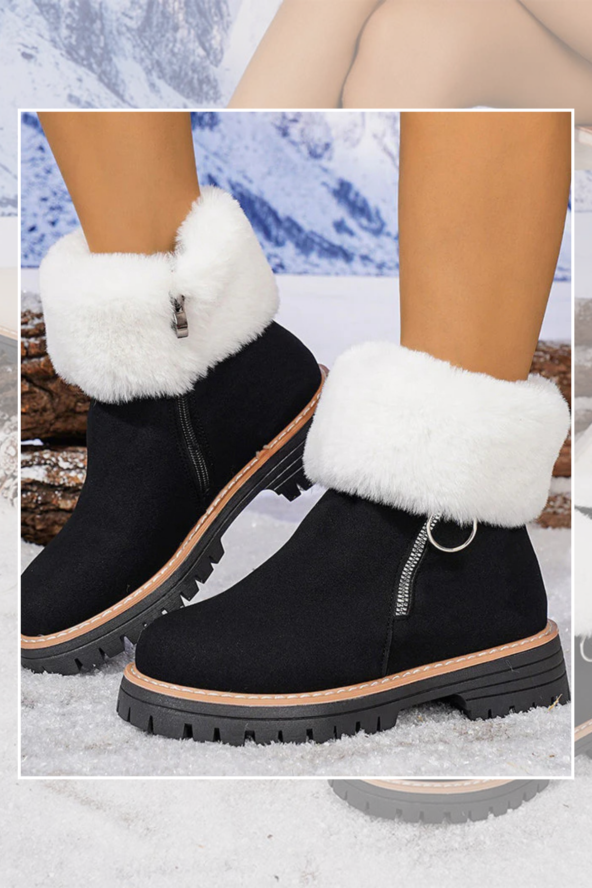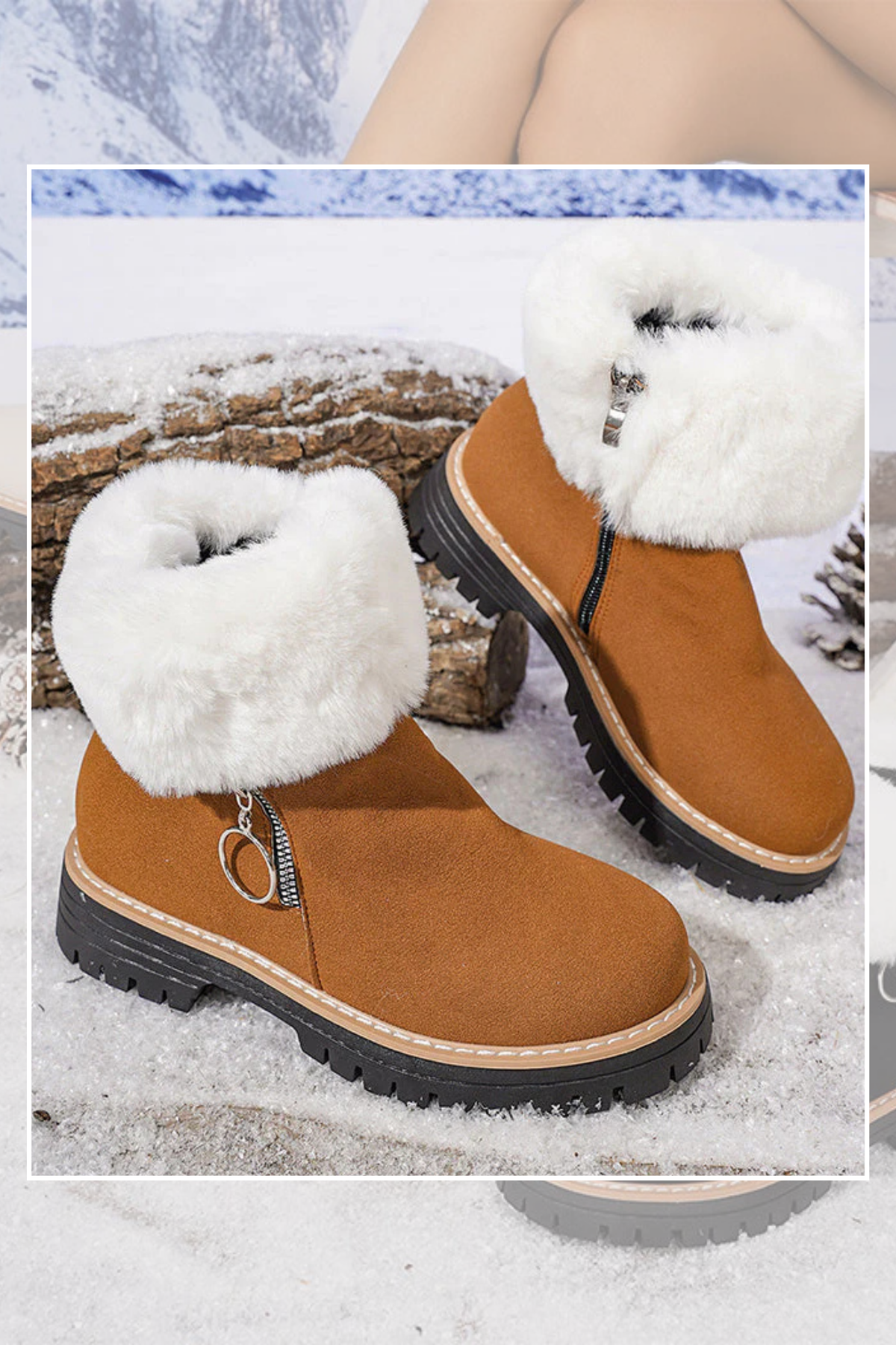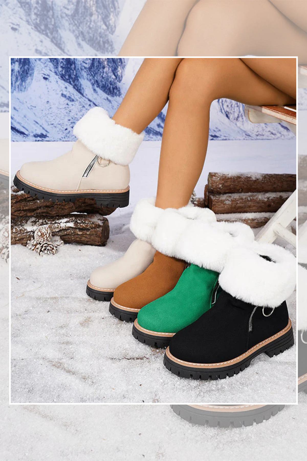 Lieferumfang: 1 * Damen Kunstfell Knöchel Schnee Stiefel mit Reißverschluss