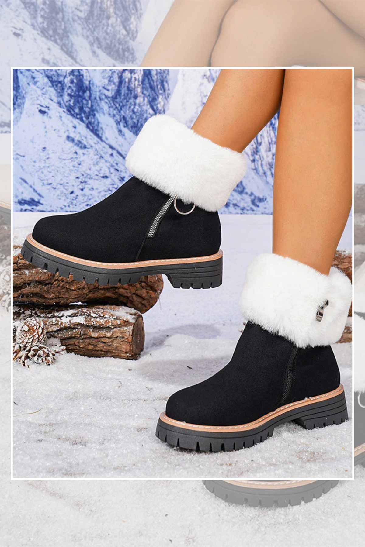 STILVOLLER KUNSTFELL-BUND: Verleiht Ihren Outfits einen Hauch von Eleganz und schickem Winterstil. Dieses weiche, auffällige Detail sorgt für zusätzliche Wärme um den Knöchel und setzt ein modisches Statement bei kaltem Wetter.