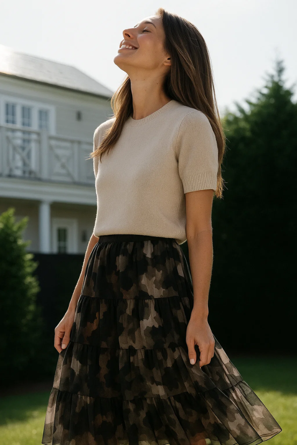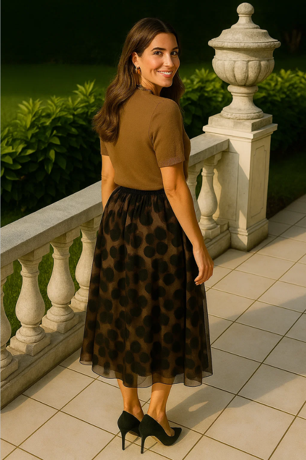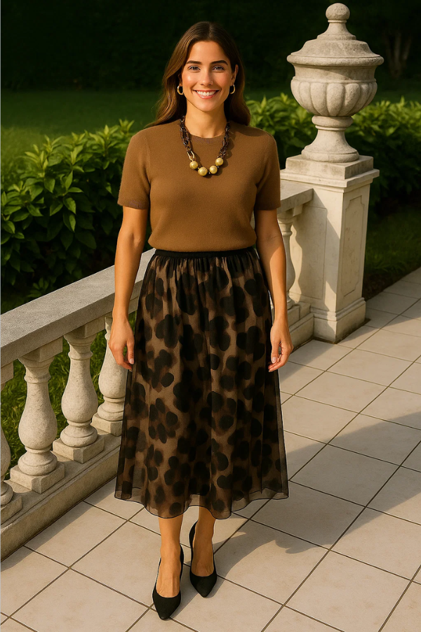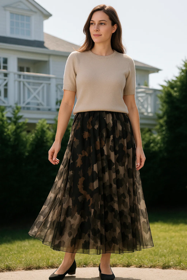 FLIESSENDER LEOPARDEN-MESH-ROCK – Setzen Sie ein Statement mit dem trendigen Mesh-Rock mit Leopardenmuster. Seine leichte, luftige Konstruktion schafft eine schöne, fließende Silhouette, die sich anmutig mit Ihnen bewegt und Ihrem Look einen Hauch von moderner Raffinesse verleiht.