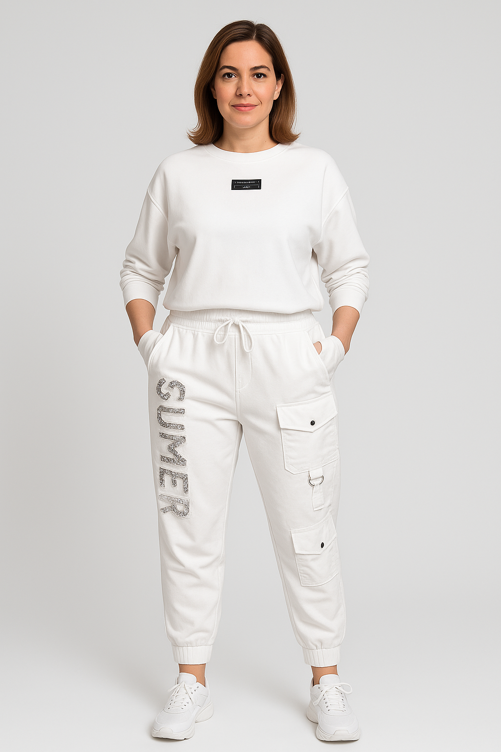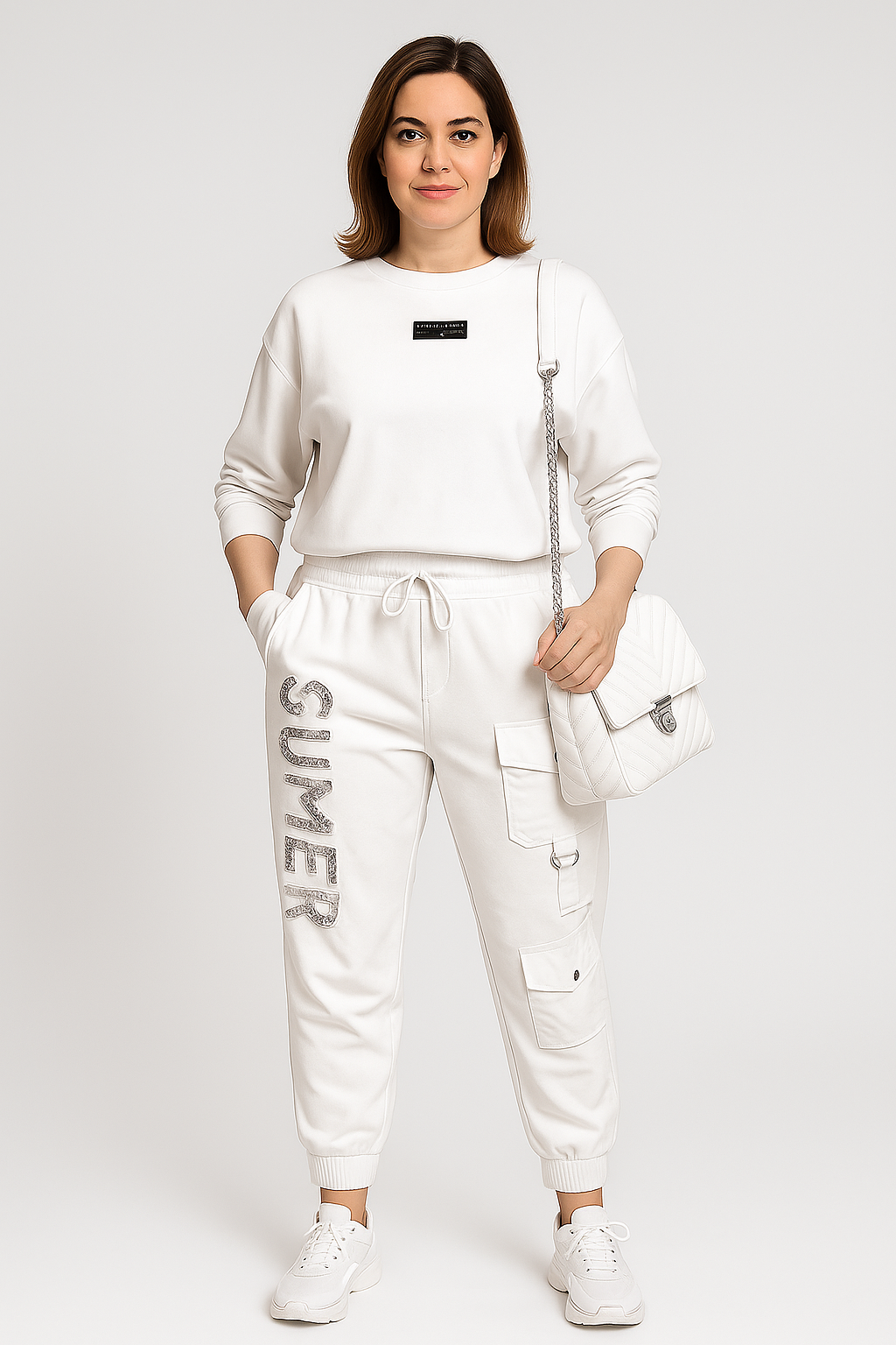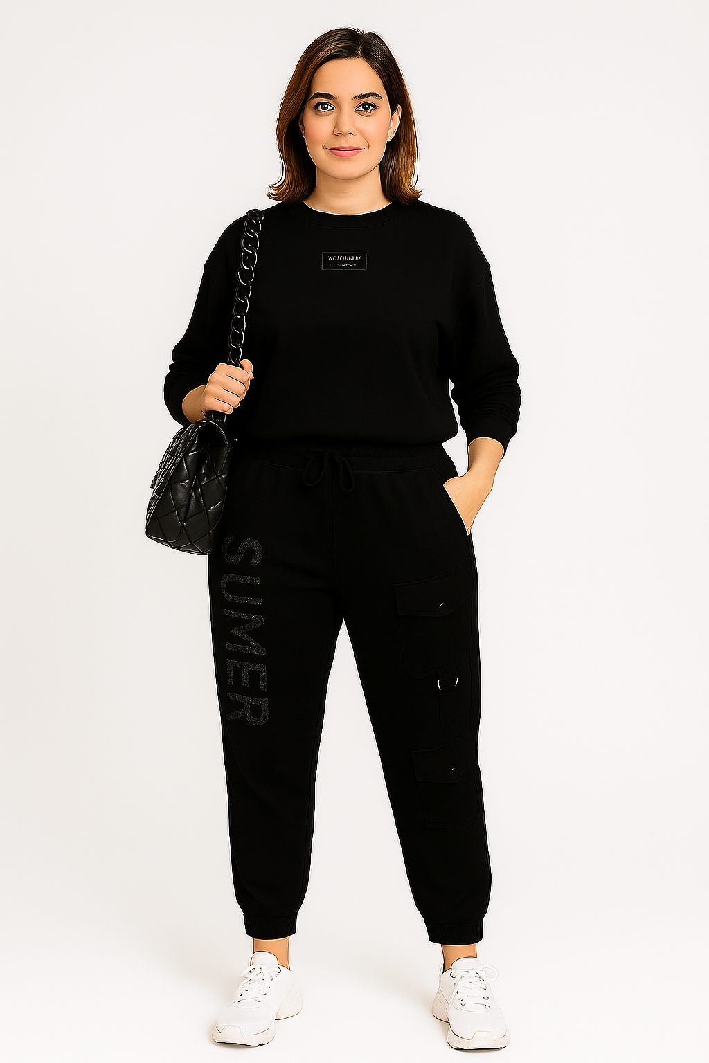 GRÖSSENTABELLEMERKMALEBUCHSTABENPRINT DESIGN - Das Oberteil zeigt einen trendigen Buchstabenprint, der ein lustiges und stilvolles Element zu Ihrem Outfit hinzufügt und es perfekt für lässige Ausflüge und entspannte Wochenenden macht.LOCKERE PASSFORM FÜR KOMFORT - Sowohl das Oberteil als auch die Hose haben eine lockere Passform, die maximalen Komfort bietet und Bewegungsfreiheit ermöglicht, während sie gleichzeitig ein modisches und schickes Erscheinungsbild bewahren.MODISCH UND TRENDIG - Dieses Set kombiniert eine lockere Passform mit einem trendigen Buchstabenprint und bietet einen stilvollen, aber lässigen Look, der es zu einem idealen Outfit für verschiedene Anlässe macht.VIELSEITIGES ZWEITEILIGES SET - Kleiden Sie dieses Set mit Accessoires auf oder lassen Sie es für eine entspannte Stimmung lässig wirken, was es zu einer vielseitigen und unverzichtbaren Ergänzung Ihrer Garderobe macht.WEICHES UND ATMUNGSAKTIVES MATERIAL - Hergestellt aus hochwertigen, weichen Materialien garantiert dieses Outfit ganztägigen Komfort und Atmungsaktivität, wodurch es eine ausgezeichnete Wahl für warme Tage und gemütliches Entspannen zu Hause ist.SPEZIFIKATIONENFarbe: Schwarz, WeißMaterial: MischgewebeGröße: S, M, L, XL, 2XL, 3XL, 4XL, 5XLLieferumfang: 1 * Lässiges Damen-Zweiteiler: Oberteil mit Buchstabenprint & HoseHINWEISEAufgrund manueller Messungen können geringe Abweichungen bei den Maßen auftreten. Die Farbe kann je nach Bildschirmvariationen möglicherweise nicht genau wie im echten Leben erscheinen.