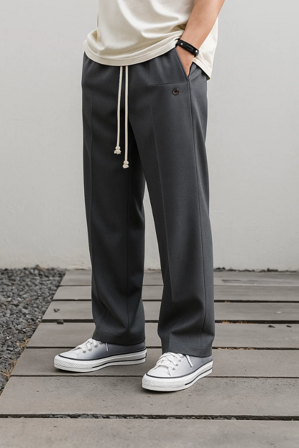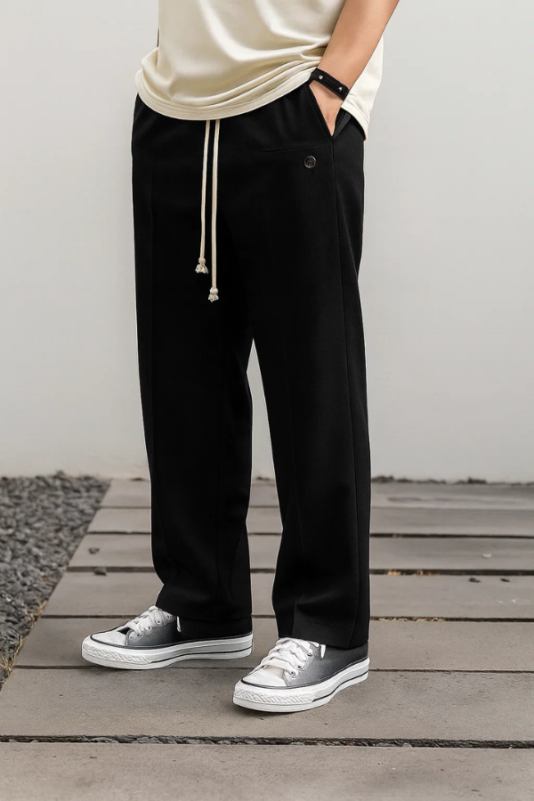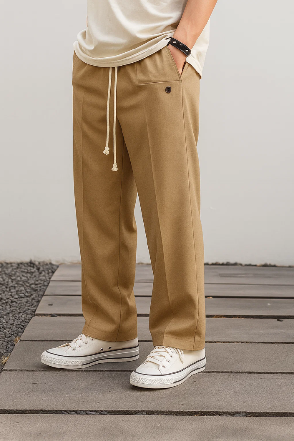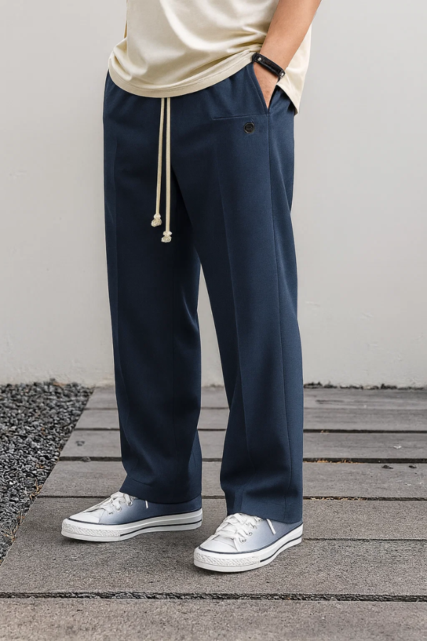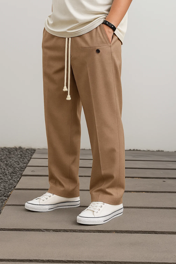 Entdecke die Larry™| Stilvolle Hose mit Kordelzug, eine clever gestaltete Hose, die mühelos Komfort und Eleganz vereint. Für alle, die nach einem vielseitigen Kleidungsstück suchen, das sowohl lässig als auch etwas schicker getragen werden kann.