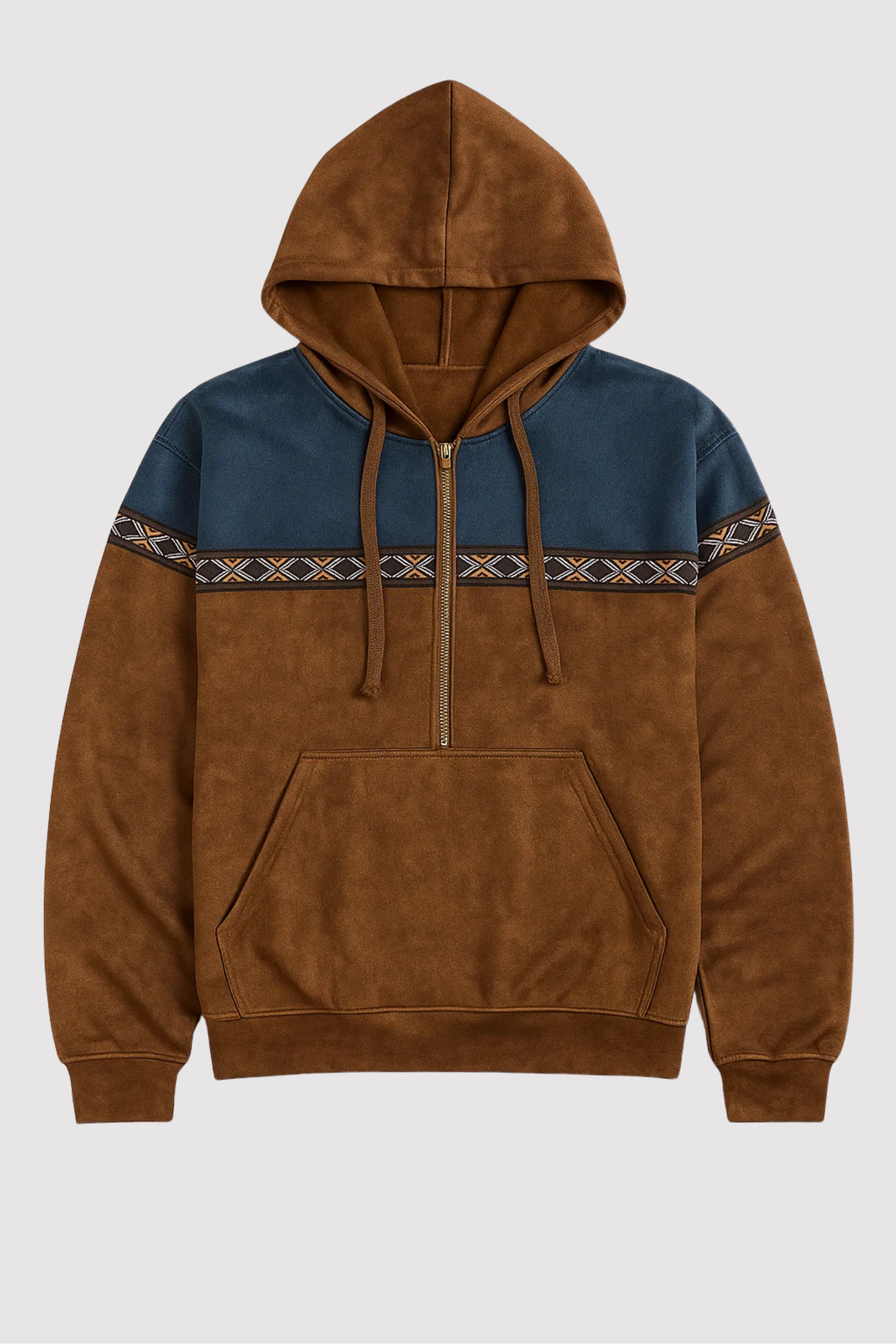 Entwickelt, um lässigen Komfort und einen markanten Stil zu bieten, bringt dieser Hoodie eine raffinierte Note in einen Klassiker der Garderobe. Mit einem halben Reißverschluss vorne, einem Muster auf der Brust und einem lockeren Schnitt ist er perfekt für entspannte Tage oder kühle Abende im Freien.