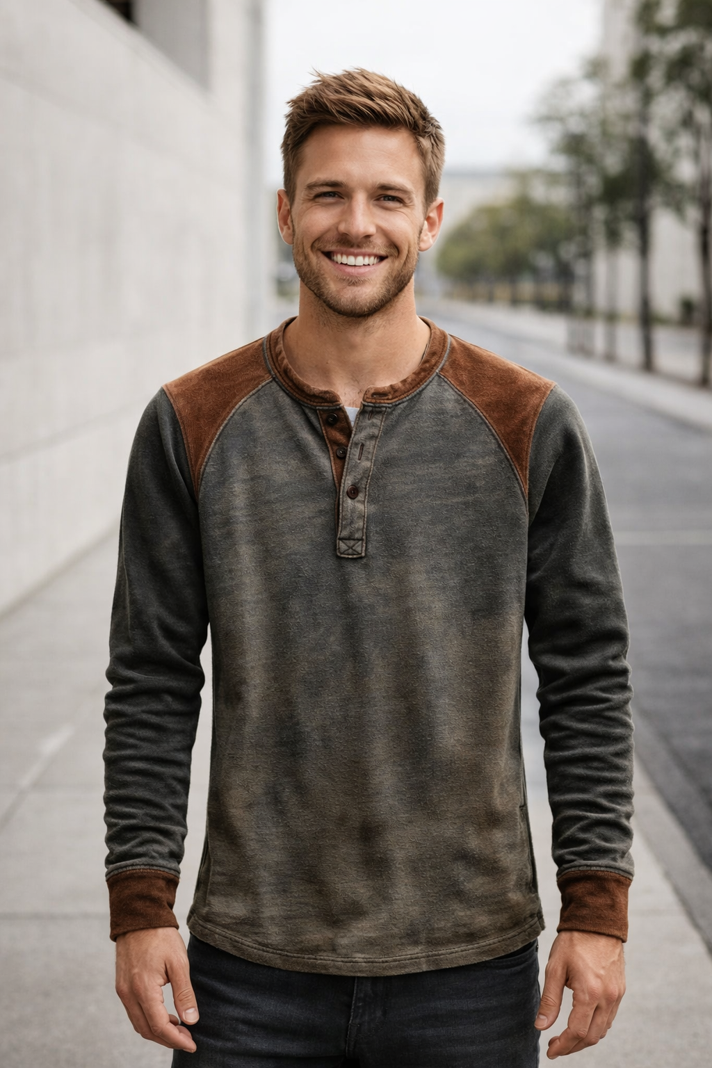 Herren Henley-Shirt – Lässig, Langarm & Komfortabel