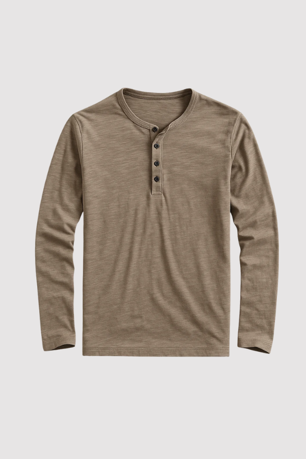 • Klassischer Henley-Ausschnitt mit Knopfleiste für einen modernen Look.