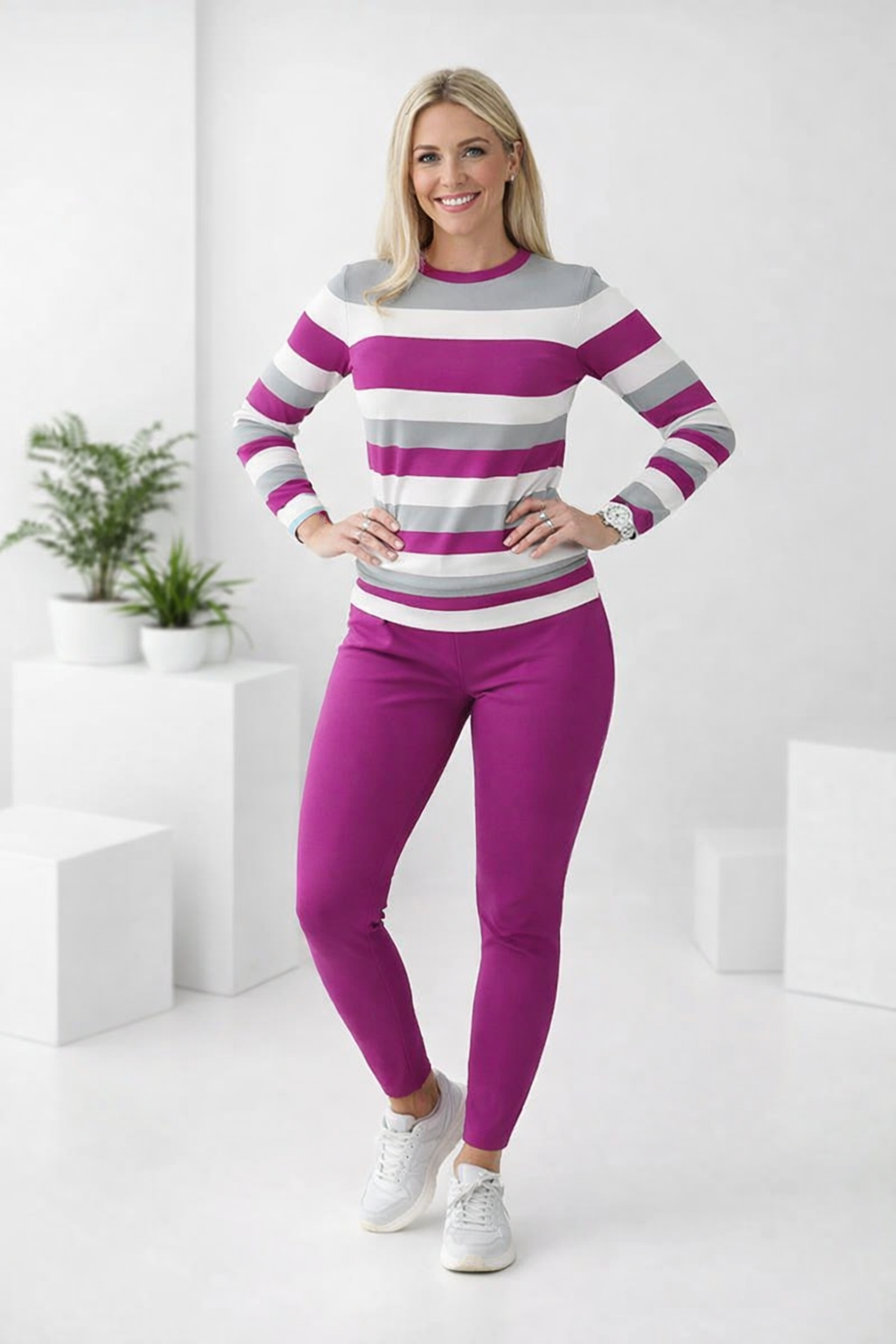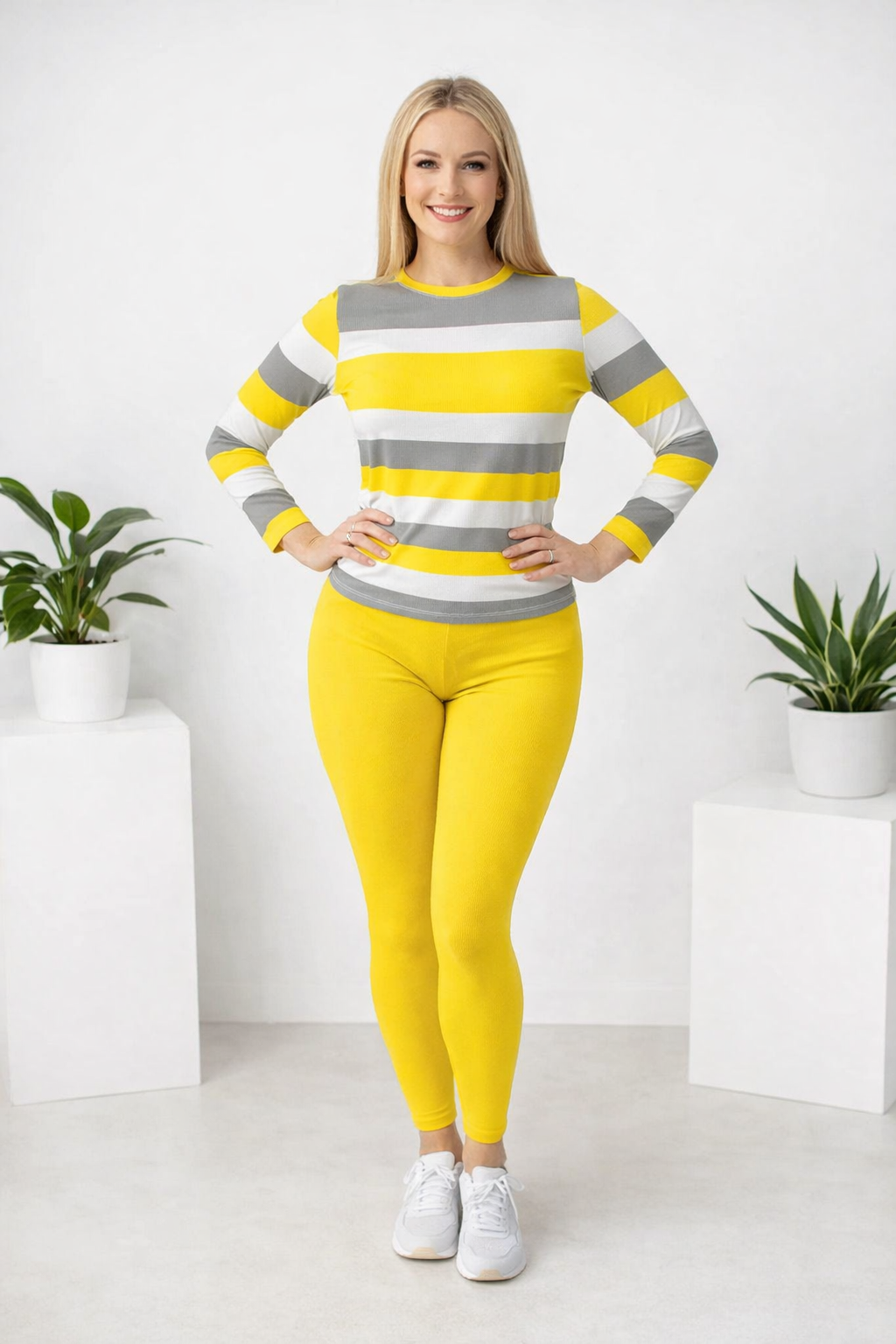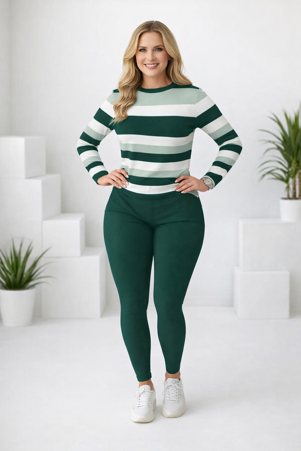 ZWEITEILIGES SET - Bietet ein komplettes, aufeinander abgestimmtes Outfit direkt aus der Verpackung, spart Zeit und Mühe beim Kombinieren. Sofort ein schicker, stimmiger Look für jede lässige Gelegenheit.ELASTISCHER STOFF - Passt sich den Körperbewegungen an und sorgt für uneingeschränkten Komfort, egal ob zu Hause entspannt oder Besorgungen erledigt werden. Das weiche Material fühlt sich den ganzen Tag über angenehm auf der Haut an.KLASSISCHES GESTREIFTES OBERTEIL - Verfügt über ein zeitloses horizontales Streifenmuster, das der Garderobe einen Hauch von klassischem Stil verleiht. Der Rundhalsausschnitt und die langen Ärmel bieten eine bequeme und schmeichelhafte Passform für verschiedene Körpertypen.HOSE MIT HOHER TAILLE - Entwickelt, um bequem an der natürlichen Taille zu sitzen, bietet sanfte Bauchunterstützung und schafft eine glatte, stromlinienförmige Silhouette. Perfekt für einen sicheren und selbstbewussten Sitz bei jeder Aktivität.VIELSEITIGER STIL - Lässt sich leicht von Loungewear in Sportkleidung oder ein lässiges Tagesoutfit verwandeln. Kombiniert mit Sneakers entsteht ein sportlicher Look, oder etwas schicker für mühelose Alltagsmode.