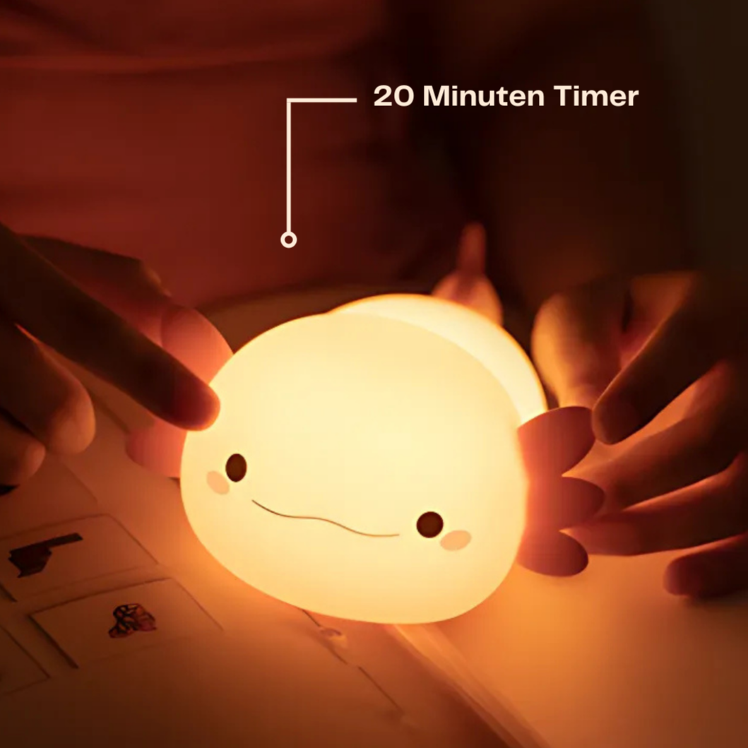 Unser limitierter kleiner Axolotl Kumpel bringt eine besondere Stimmung in dein Zuhause – perfekt für den Herbst! Mit zwei Helligkeitsstufen und einem 30-Minuten-Timer sorgt er für gemütliches Licht und passt sich deinen Bedürfnissen an. Er ist wiederaufladbar und hält bis zu 6 Stunden, hergestellt aus robustem ABS und Silikon.