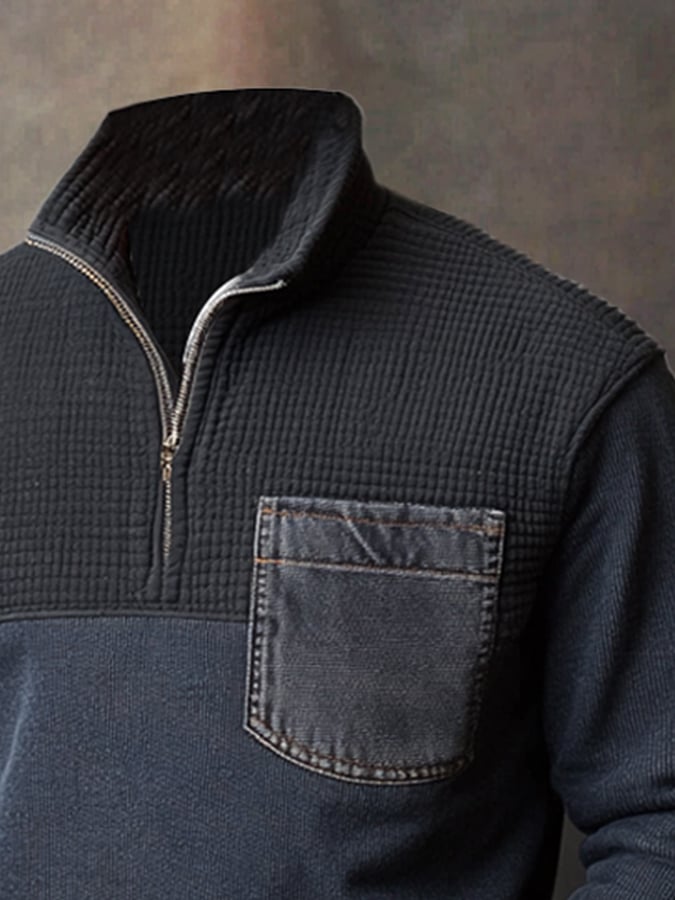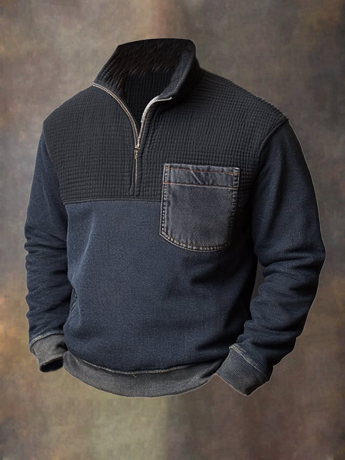 Herren-Retro-Langarm-Sweatshirt mit Farbblockdesign