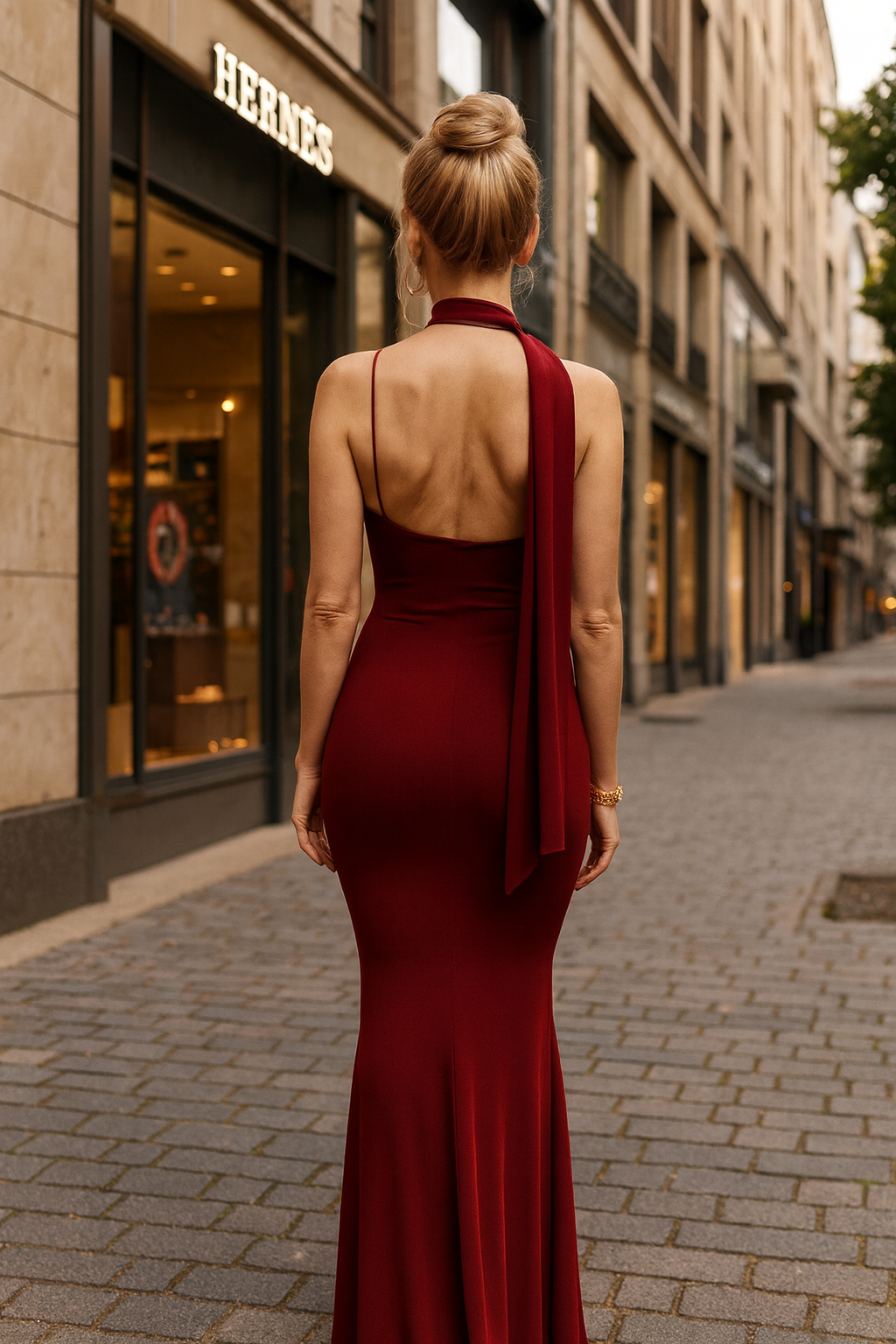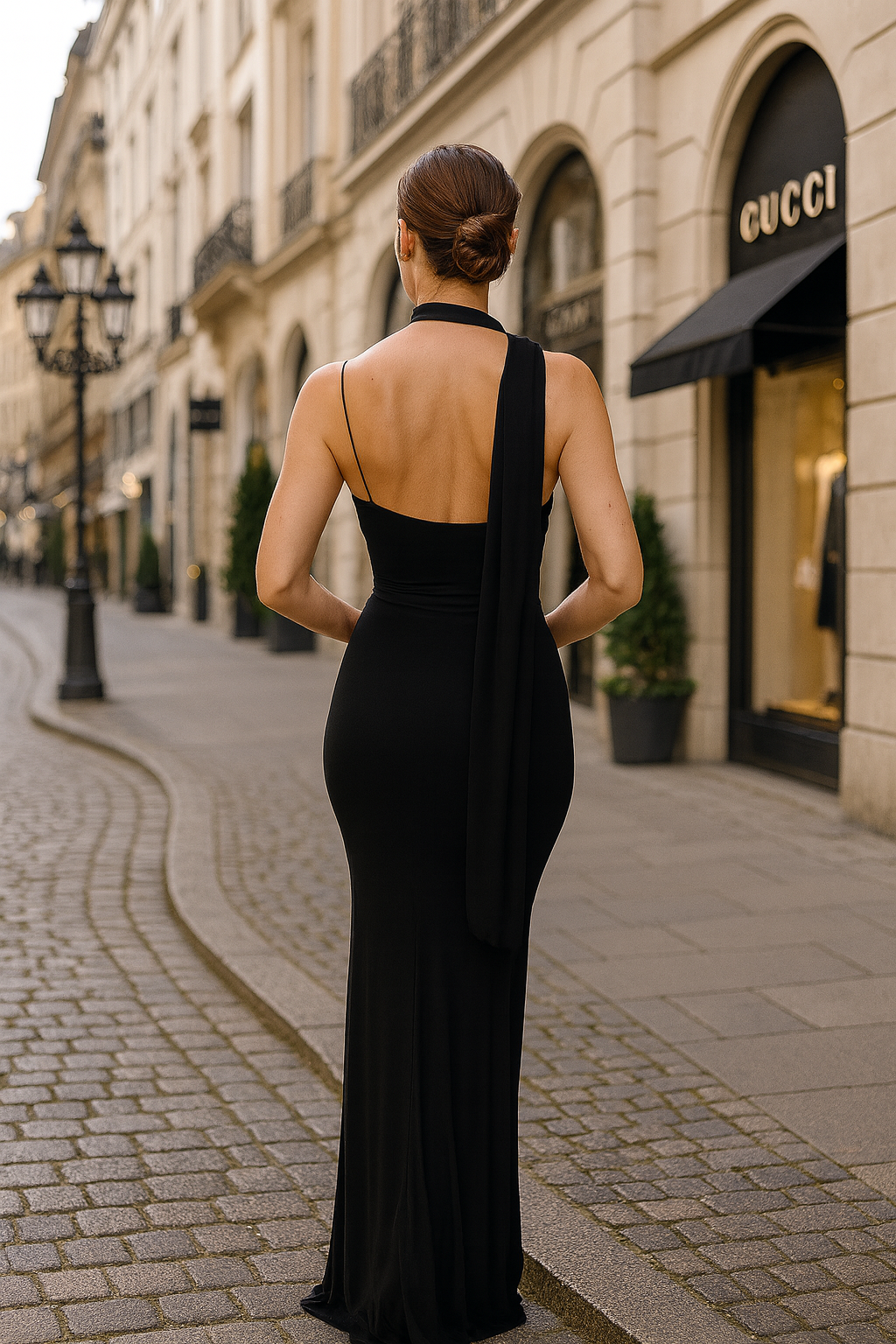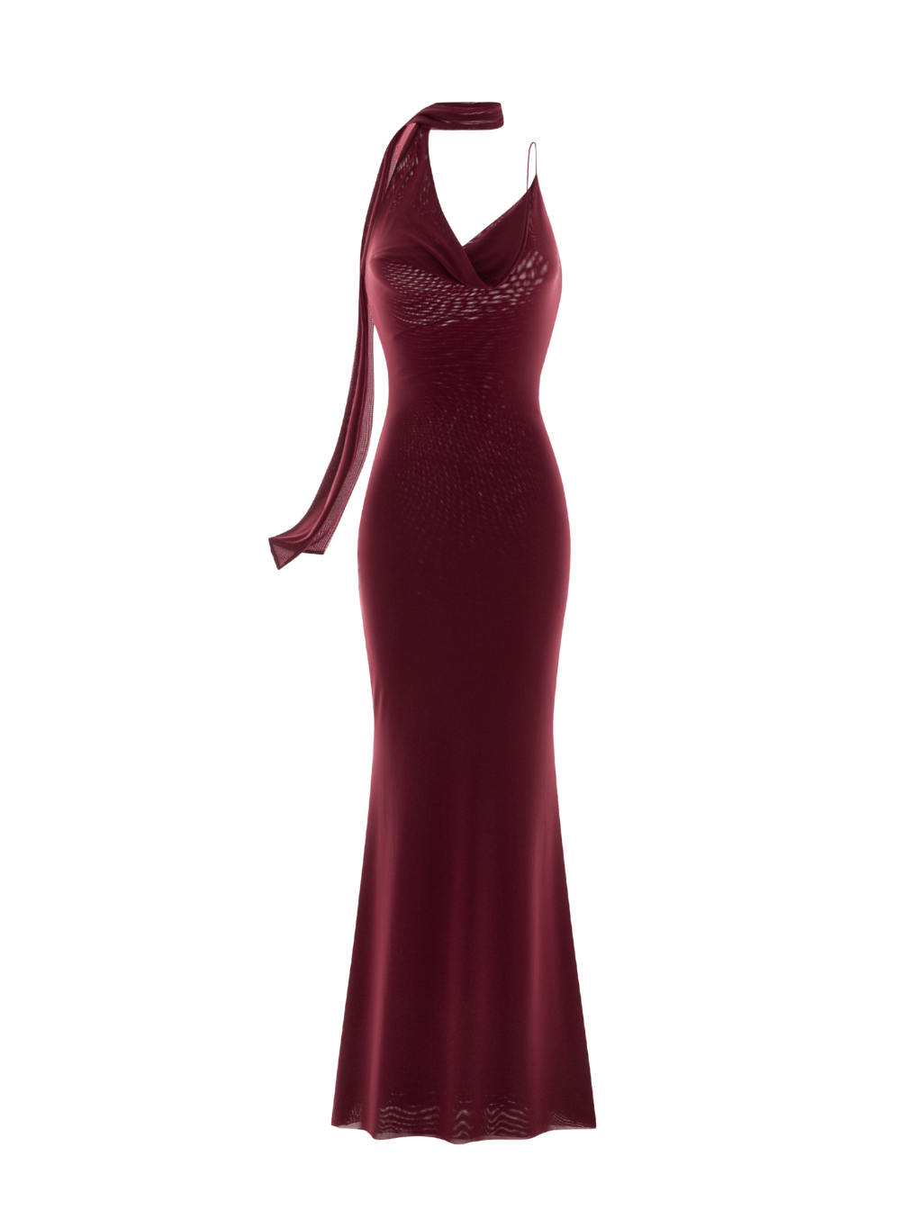 Elevate your evening look with the Mesh Halter-Neck Cowl Gown, a sophisticated yet sultry piece designed to make a lasting impression. Featuring a soft cowl neckline and delicate halter straps, this gown flatters your figure with its ruched bodice and form-fitting silhouette. Made from breathable mesh fabric, it offers comfort and elegance in equal measure—perfect for galas, formal dinners, or special occasions