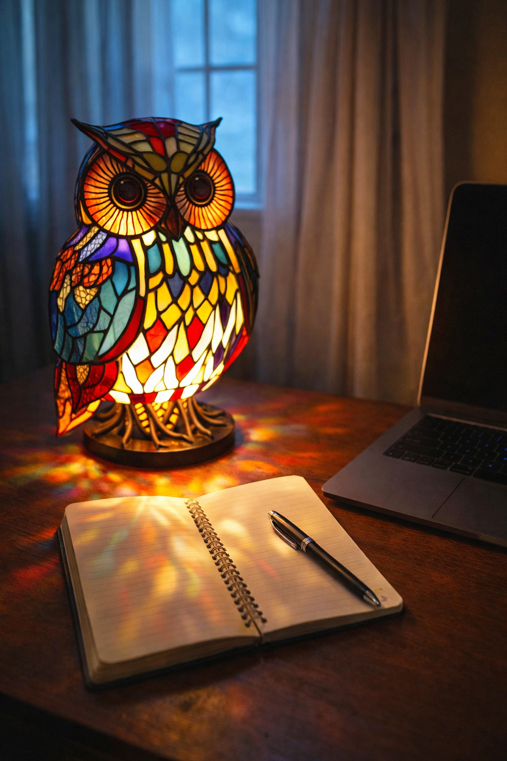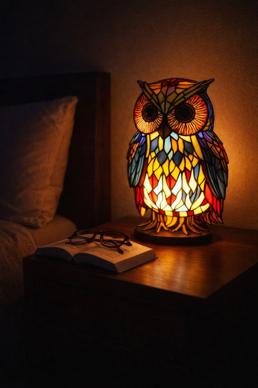 ✅Beruhigendes Umgebungslicht: Die OwlGrace Tischlampe strahlt ein warmes, beruhigendes Licht aus, das sofort eine friedliche Atmosphäre in jedem Raum schafft. Ihre sanfte Beleuchtung ist ideal, um abends zur Ruhe zu kommen, vor dem Schlafengehen zu lesen oder eine gemütliche Stimmung zu schaffen. Das sanfte Leuchten schont die Augen und verleiht Ihrem Raum eine einladende und ruhige Atmosphäre.✅Handgefertigte künstlerische Details: Jede Lampe besteht aus sorgfältig zusammengesetzten Glasstücken, die das Licht in satten, lebendigen Farbtönen reflektieren. Wenn sie beleuchtet sind, werden die Farben lebendig und werfen wunderschöne Muster in den Raum. Diese Handwerkskunst macht jede Lampe zu etwas Besonderem und Durchdachtem.